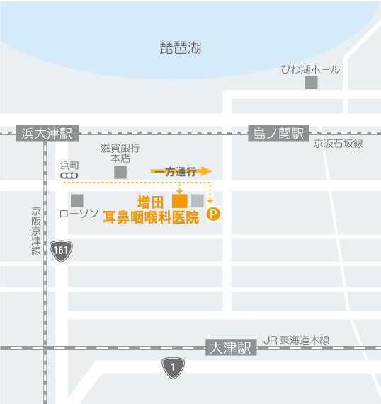 ②滋賀銀行さんを左手に通り過ぎ少し進むと、右手に増田耳鼻咽喉科医院があります